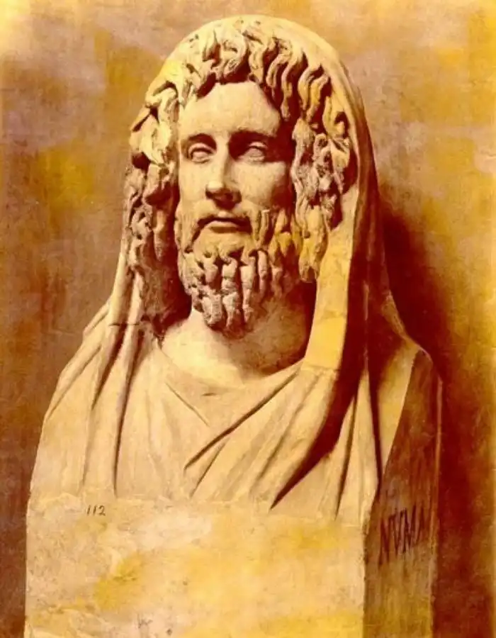 Нума Помпилий — полулегендарный царь Рима. Правил с 715 по 673/672 годы до н. э. Ему приписывается упорядочение календаря, учреждение жреческих и ремесленных коллегий, религиозных культов и празднеств Агоналий.