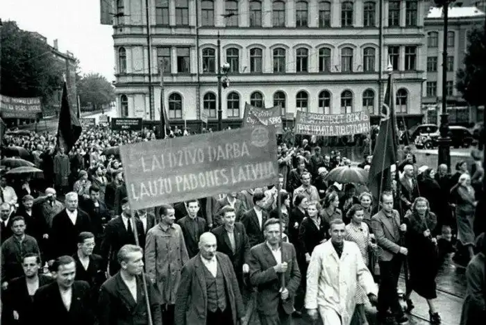 Рига. Рабочие празднуют советскую аннексию Латвии