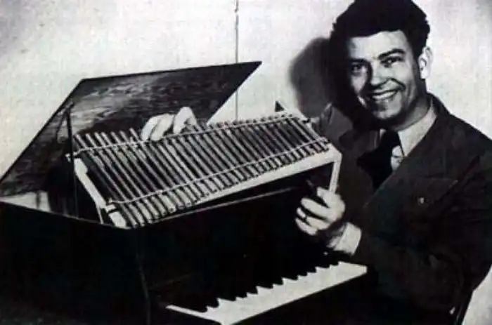 Используя обрезки алюминиевых трубок и другой металлолом со свалки, он сконструировал маленькое и невероятно дешёвое пианино с 29 клавишами – на таком можно было играть буквально «на коленке» (оно так и называлось – «Army Air Corps Lap Piano», то есть «наколенное пианино военно-воздушных сил»).