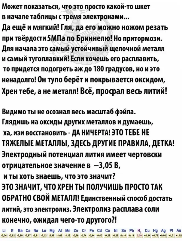 Литий - металл живущий по своим правилам
