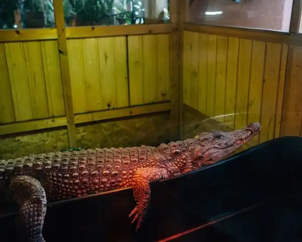 В этой церкви находится не чучело, а вполне живой крокодил. Еще интересней, что он проживает в 40 километрах от Петербурга. Животных приютил священник Олег Емельяненко, настоятель храма святителя Спиридона в Ораниенбауме. Он создал целый зоопарк: тут обитают не только три нильских крокодила, но и енот, черепахи, кроли и петухи. С помощью животных храм привлекает детей, а еще, как говорит Олег, воссоздает "потерянный рай" - одно время в ходе служб там даже начинали петь канарейки, но, сожалению, как-то раз ночью их кто-то съел.