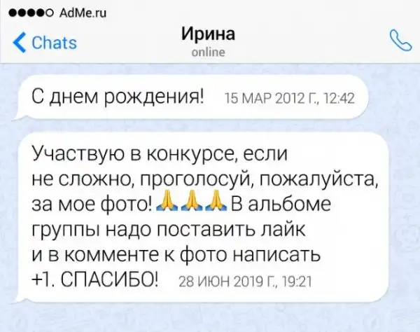 3. Сообщения друзьям с просьбой: «Проголосуйте за мое фото!»