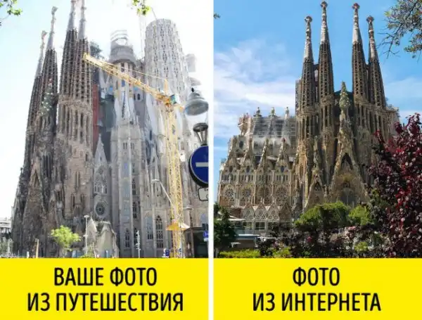 Вашим друзьям будет гораздо интереснее посмотреть снимки, где присутствуете вы сами. А Эйфелеву башню и храм Саграда Фамилия лучше увидеть вживую, ну или хотя бы на профессиональных фотографиях. Таких в интернете очень много.
