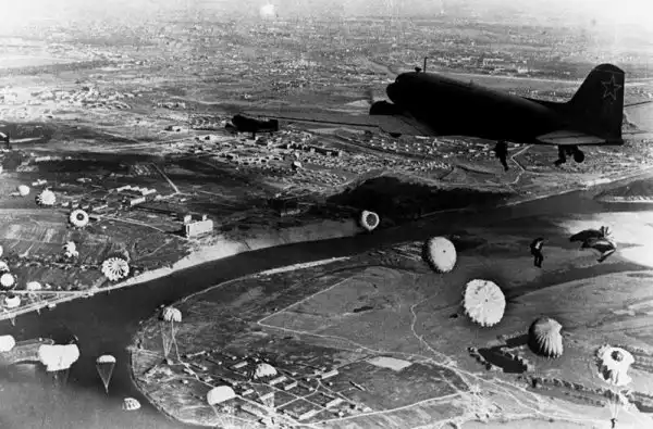 В ходе Великой Отечественной войны всем воздушно-десантным соединениям было присвоено звание гвардейских. 296 человек были удостоены звания Героя Советского Союза. На фото: высадка десанта, 11 ноября 1944 год