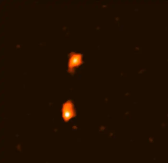 Они являются одними из самых старых известных галактик. Судя по снимку, они в 5 раз меньше Млечного Пути. Примечательно, что ALMA запечатлел их в состоянии, когда прошло 800 миллионов лет после Большого взрыва. Хоть снимку и более 13 миллиардов лет, цветовые градиенты показывают то, что происходит вращение объектов и движение газа.