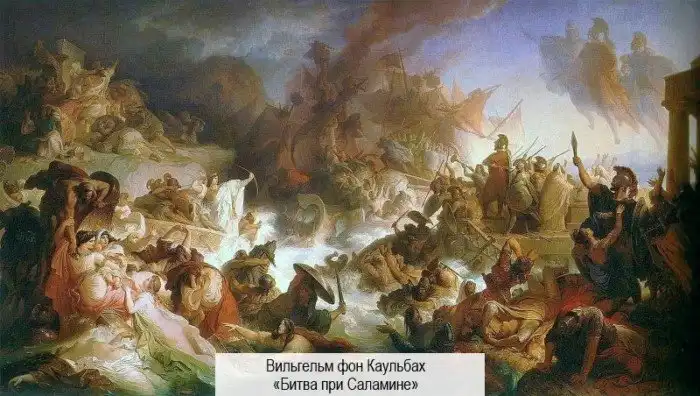 Легкие греческие триеры умело лавировали между массивными персидскими кораблями, которые были слишком неповоротливы, чтобы отражать их атаки. К тому же персы не знали фарватер, и множество их кораблей разбилось о скалы. Наконец, потеряв две сотни кораблей, царь Ксеркс приказал войскам покинуть Грецию.