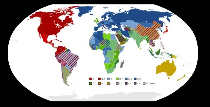 Согласно классификации Международной электротехнической комиссии, сегодня в мире используются 14 стандартных типов электрических розеток. Они обозначаются латинскими буквами от A до N. Каждый тип розетки может иметь несколько различных стандартов.