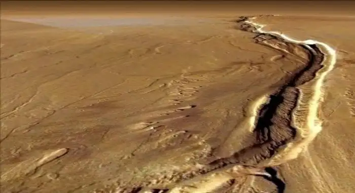 Широкие русла рек пронизывают марсианский ландшафт и разветвляются в причудливые дельты.
