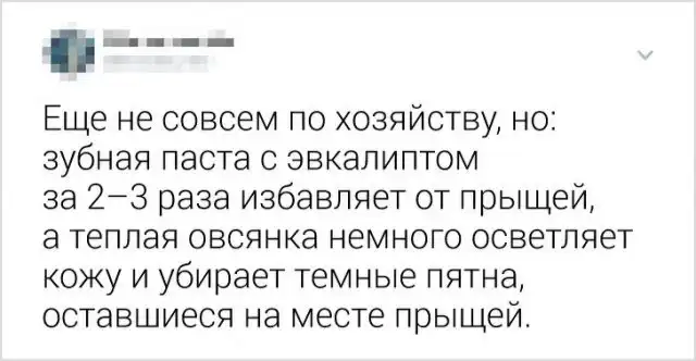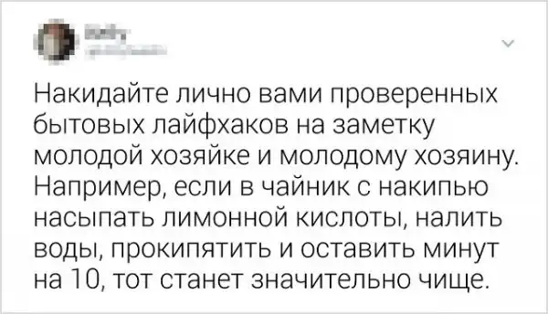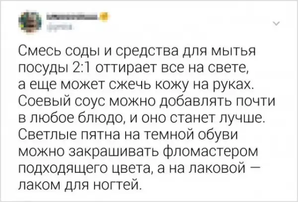 Пользовательница с ником "Лана Ипекакуана" попросила пользователей поделиться с ней какими-нибудь полезными советами по хозяйству. Таким образом, случайно образовался полноценный тред из интересных лайфхаков, которые действительно работают и могут пригодиться в быту. Получился сборник советов на все случаи жизни - от мытья ванн до того, какие лекарства давать или не давать собакам.