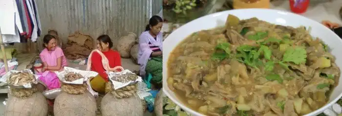 И хентак и нгари готовят путем сбраживания мелких пресноводных рыб с горчичным маслом и солью. Затем высушенную рыбу плотно упаковывают в большую глиняную герметичную урну. Урну хоронят в землю на 30–40 дней. Затем раскапывают и наслаждаются ароматом. Хавают тухляшку с овощами, иногда с рисом. Овощи сначала тушат, затем пассеруют рыбным соусом и украшают травками - называется это дело эромба, и это одно из самых популярных блюд Манипура. Его разновидность - чатни - готовят из вареных овощей с пюре из чили и рыбьих ошметков в соусе.