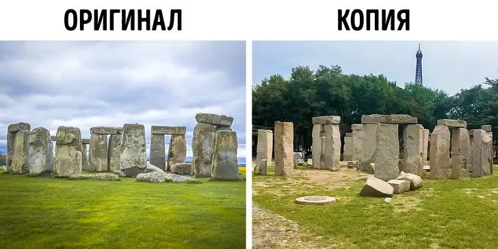 Открытый еще в 1993 году Пекинский парк Мира насчитывает около 100 копий природных и культурных достопримечательностей из 50 стран. Например, здесь можно посмотреть на реплику легендарного Стоунхенджа в натуральную величину — с единственным отличием, что смотрите вы не на древние камни, а на умело задекорированные куски цемента. Хотя расположение даже мелких обломков знаменитого мегалитического сооружения скопировано китайцами с точностью до сантиметра.