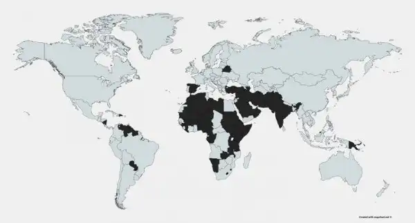 13. Черным отмечены современные страны, где глава государства носит усы или бороду