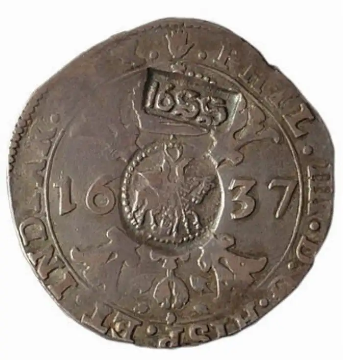 «Ефимок с признаком» (надчеканки 1655 года на брабантском талере 1637 года). Источник изображения: wikimedia.org