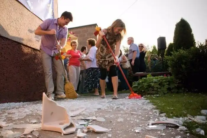 Это наверное худшая свадебная традиция. По окончанию церемонии бракосочетания, гости собирают остатки еды с праздничного стола и все найденное перемешивают в ночном горшке, как бы делая суп. Затем они врываются в комнату новобрачных и отказываются уходить пока пара все не выпьет. Это должно им дать сил для их первой брачной ночи. Сегодня этот суп заменяют шоколадом или шампанским, но вы все равно пьете его из настоящего горшка.