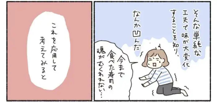 Я была разочарована из-за того, что до этого не понимала, как такой простой трюк может сделать суши намного лучше. «Я потратила впустую души рыб, которых я ел до сих пор», — подумала я.