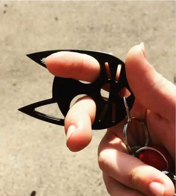 Маленький брелок, состоящий из двух колец в виде кошачьей мордочки с острыми ушами, который в случае опасности превращается в режущее оружие не хуже, чем кепка у «Острых козырьков». Не мой лайфхак, и я им не пользовалась — я вообще не умею драться. Но, если дойдет до дела, думаю, инстинкты подскажут. Просто посмотрите видео и сделайте вывод, нужна вам такая штука или нет.