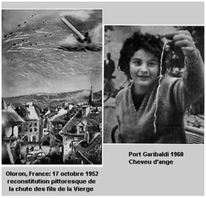 Приведенный выше список можно продолжать долго, но самое известное выпадение «волос ангела» произошло в 1954 году в Италии. 27 октября Пьетро Ластруччи и Дженнаро Лючетти наблюдали на небе 2 объекта, похожих на веретено, за которыми тянулись следы напоминающие белое пламя. Объекты совершили плавный разворот полета на 180 градусов и исчезли из поля наблюдения.