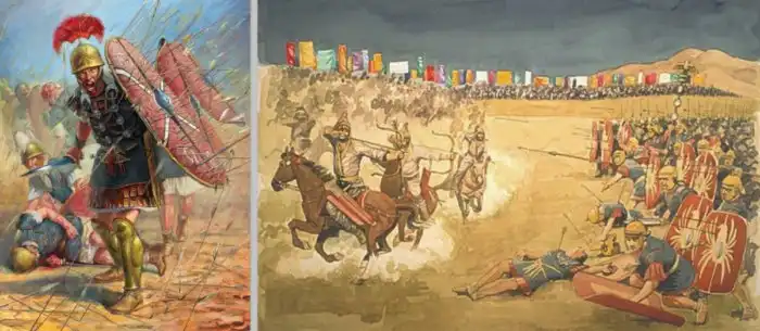 Однако в 53 году до нашей эры римская армия потерпела страшное поражение при Каррах. Войско из 50 000 легионеров было наголову разгромлено войском из 10 000 парфянских конных лучников – тогда погибло больше половины римлян, в том числе знаменитый полководец Марк Лициний Красс и его сын. Еще 15 000 римлян попали в плен. Парфянские стрелы пробивали щиты и нагрудники римлян насквозь, закованные в броню пехотинцы ничего не могли сделать – их методично расстреливали, как мишени в тире. Так западный мир впервые встретился с одним из самых грозных видов метательного оружия – сложным (композитным) луком.