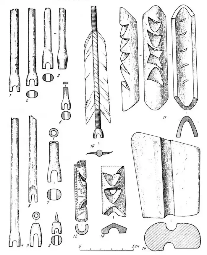 В целом русские луки и стрелы 10–14-го веков по конструкции больше напоминают азиатские, чем европейские. Однако применение деревянных планок вместо роговых давало русским лукам существенное преимущество – они одинаково хорошо сгибались и в жару, и в мороз. Татарские и монгольские луки, сделанные из роговых пластин, по свидетельствам летописцев, на сильном морозе переставали гнуться.