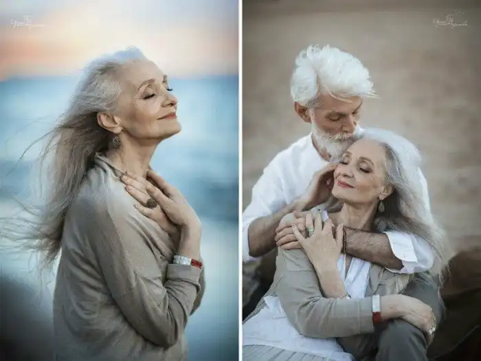 На фото модели из Санкт-Петербурга. Мужчине - 45 лет, а женщине - 62. Парой не являются, да и мужчину пожилым точно не назовешь.