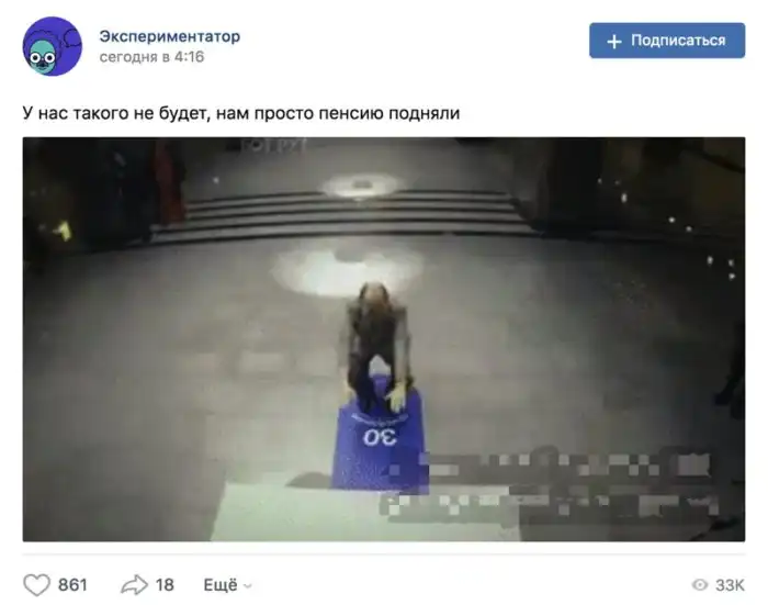 Вообще-то этот аппарат, дающий право на поездку в метро за 30 приседаний был установлен в Москве, и если бы подняли пенсию - многие были бы счастливы, но подняли пенсионный возраст