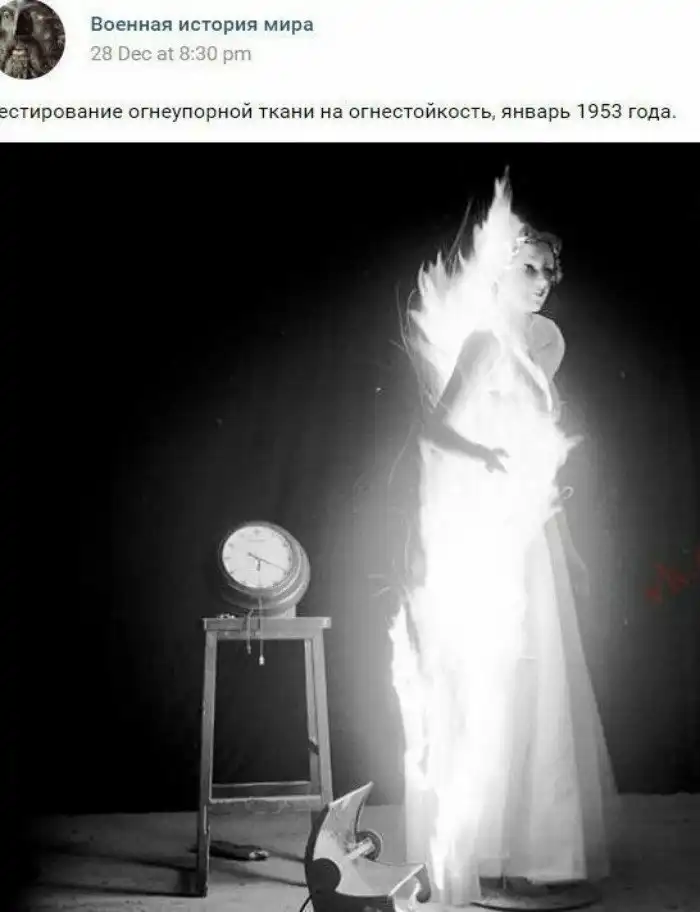 Нет, тестировали обогреватель - насколько быстро он подожжет обычную ткань, как быстро она сгорит и сколько ожогов будет за определенное время. На фото манекен