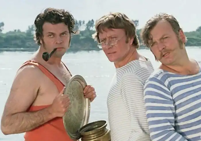 «Один раз мы взяли с собой керосинку. Целую неделю мы как будто жили в керосиновой лавке. Керосин просачивался всюду. (…) Он растекся по всей реке, заполнил собой пейзаж и отравил воздух. Иногда керосиновый ветер дул с запада, иногда с востока (…) Мы попытались уйти от него в Марло. Чтобы избавиться от керосина, мы оставили лодку у моста и пошли по городу пешком, но он неотступно следовал за нами. Весь город был полон керосина. Мы проходили по кладбищу, и нам казалось, что покойников закопали в керосин…»