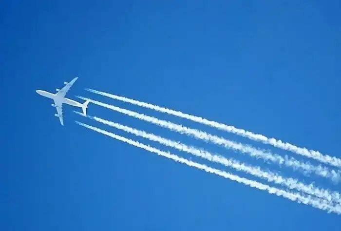 Наверняка, некоторые иногда задумывались, почему за реактивным самолетом на небе остается белая полоса. Эти белые следы, известные как инверсионные, образуются, когда горячие и влажные выхлопные газы из двигателя самолета смешиваются с более холодным наружным воздухом. Водяной пар из выхлопных газов замерзает и становится видимым.