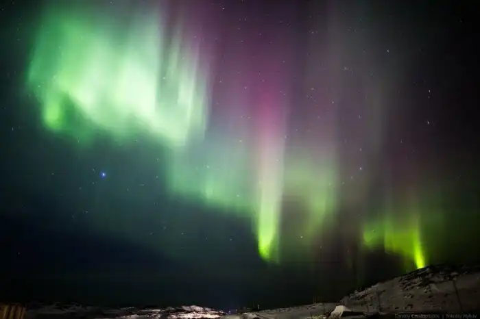 Aurora Borealis и Aurora Australis (северное и южное полярные сияния) вызваны реакциями ионов, происходящими в четвертом уровне атмосферы, термосфере. Когда высоко заряженные частицы солнечного ветра сталкиваются с молекулами воздуха над магнитными полюсами планеты, они светятся и создают великолепные световые шоу.