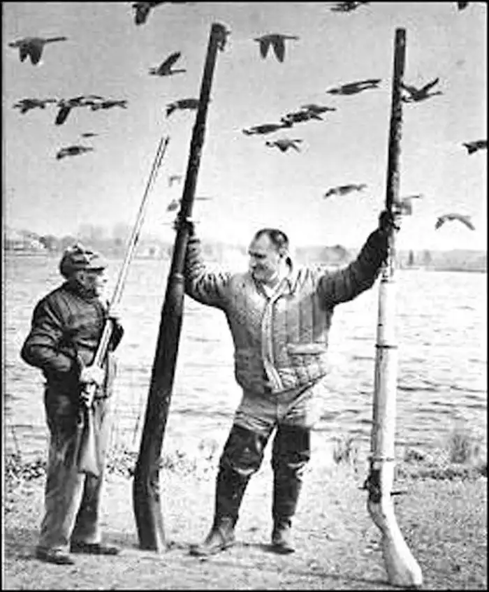 С целью максимального получения добычи в 19 веке появились чудовищные ружья с длиной ствола в 2,5 м (есть сведения о единичных экземплярах длиной в 4 м). Диаметр ствола мог превышать 50 мм, масса заряда дроби при этом нередко доходила до полукилограмма, а убойная сила дробинок сохранялось на расстоянии почти 90 метров. Поскольку заряд пороха был весьма солидным по массе, то и разрывы подобных ружей были делом не таким уж и редким, но это была плата за риск.