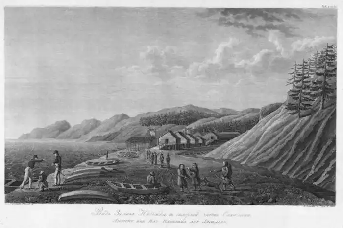 Но что же делала все это время «Нева»? После того, как корабли экспедиции расстались у Гавайев, она направилась к острову Кадьяк, расположенному у берегов Аляски, и вошла в гавань Святого Павла, где находился центр русских владений в Америке, в тот же день, в который Крузенштерн первый раз прибыл на Камчатку.