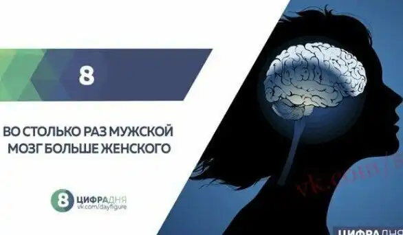 И еще из той же серии - полная ересь, хотя мужской мозг и правда немного больше женского, но никак не в 8 раз. Представляете голову мужиков с таким огромным мозгом?