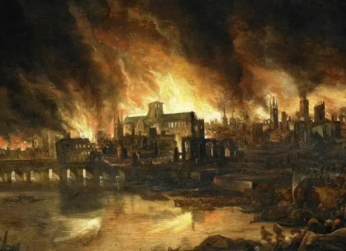 Великий лондонский пожар 1666 года длился почти четыре дня и охватил центральные районы города. В пожаре сгорели 13 500 домов, 87 церквей. При населении центральной части Лондона в 80 тысяч человек 70 тысяч остались без крыши над головой.