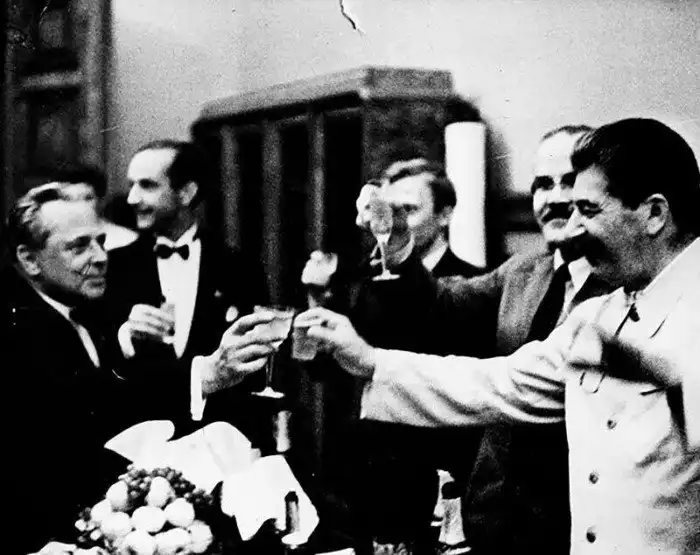 Более того, в крайне интересных мемуарах маршала авиации А. Голованова (кои всем советую почитать) описан интересный момент, когда Сталин вступил в алкобаттл с сэром Уинстоном Черчиллем, прибывшим в Москву для переговоров. Британского премьера унесли отдыхать, а Сталин сам встал из-за стола и сказал, что завтра гостю придётся туго.
