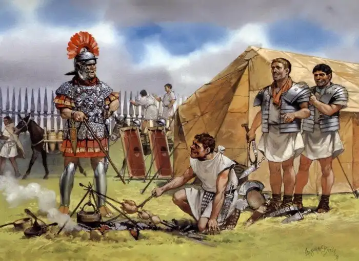 Так что же влекло в таком случае добровольцев в ряды армии? Какие блага? Да, бонусы система раздавала. Но только после выполнения всех условий контракта. Ветерану полагалось полноценное гражданство и пониженный налог, участок земли на окраине (своеобразная пенсия) – это после службы. А на время армейских будней нормальное сбалансированное питание (большинство граждан Рима о таком рационе только и мечтало), возможность посмотреть свет за казенный счет, отличное по меркам эпохи медицинское обслуживание, дармовую одежду и обувь и вполне реальную карьерную лестницу – кое-кто из простых солдат сумел стать и императором, хотя большинству даже должность центуриона казалась переделом мечтаний.
