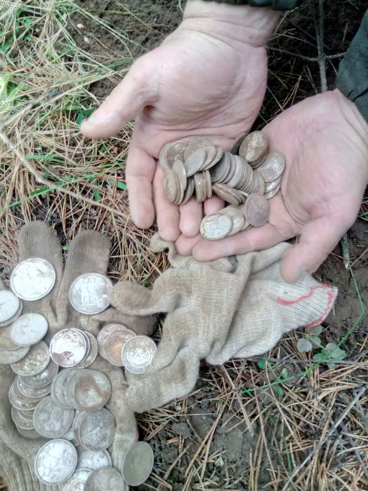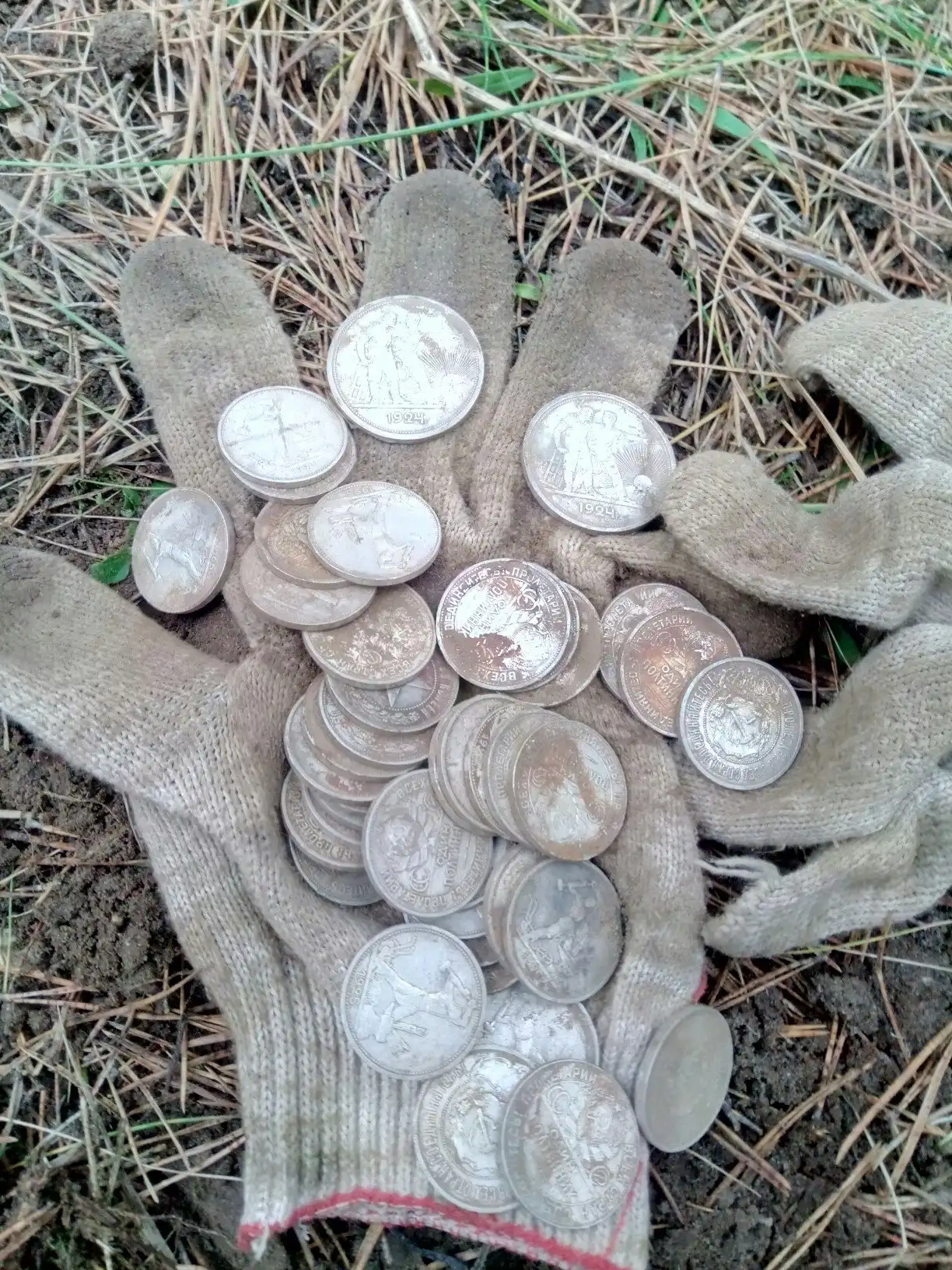 Копали мы почти до сумерек и откопали 240 полтинников и по рублю 24-го года две монетки. хватило всем пятерым, никто не в обиде.