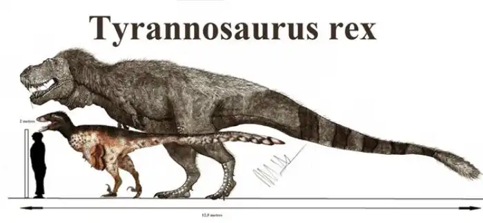 Сравнение размеров тираннозавра, дакотараптора и человека
