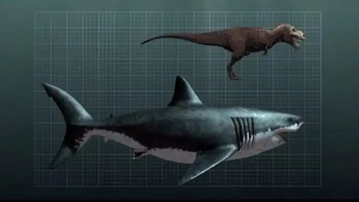 Сравнение размеров тираннозавра и доисторического мегалодона