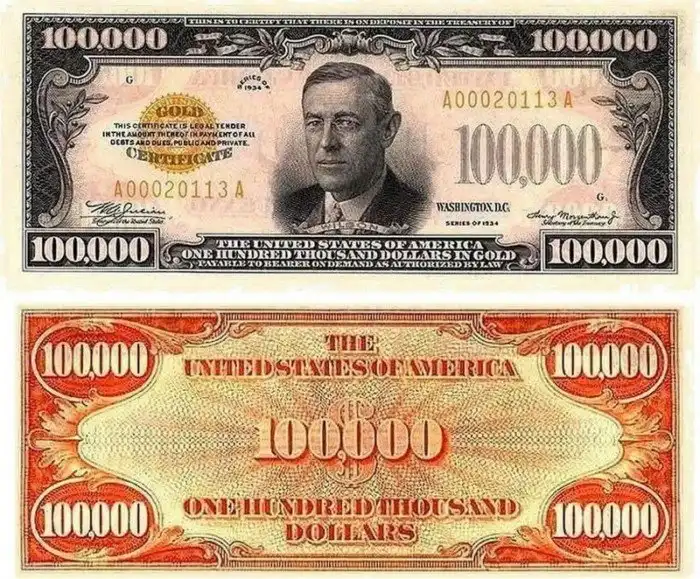 В 1934 году были выпущены купюры номиналом в 100 000 долларов