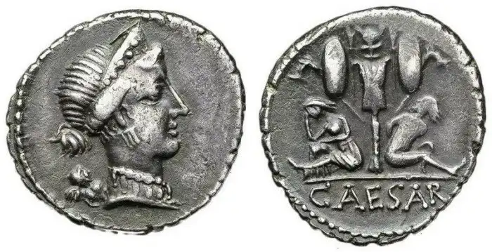 Первым человеком, чье имя было помещено на монету, был Юлий Цезарь