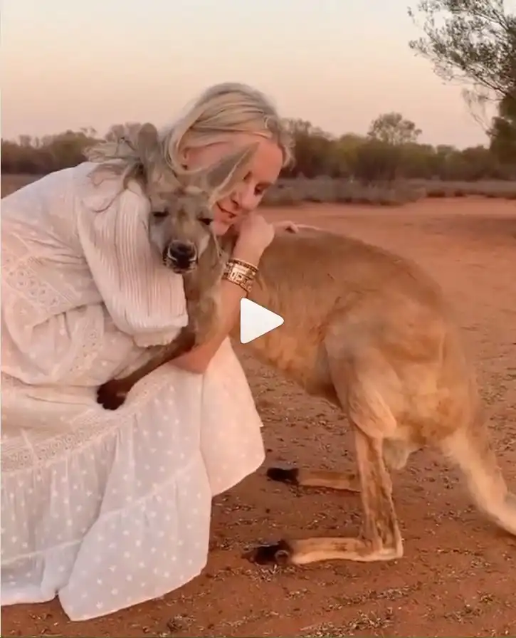 15. Кенгуру обнимает женщину-волонтера