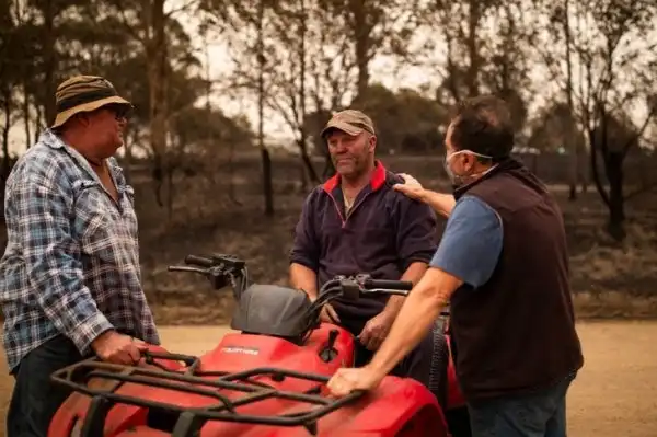 17. Жители прибрежного города Маллакооты были вынуждены покинуть дома и спасаться от огня на пляже. Благодаря этой команде пожарных огонь в Маллакооте был потушен