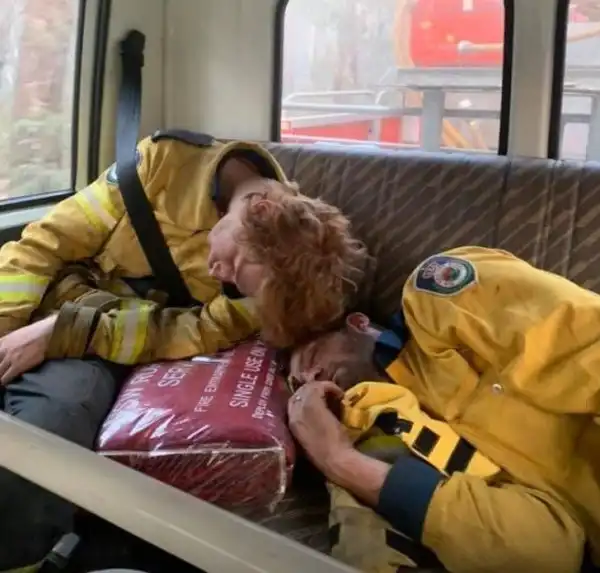 8. Пожарные уснули прямо в машине после тяжелой смены