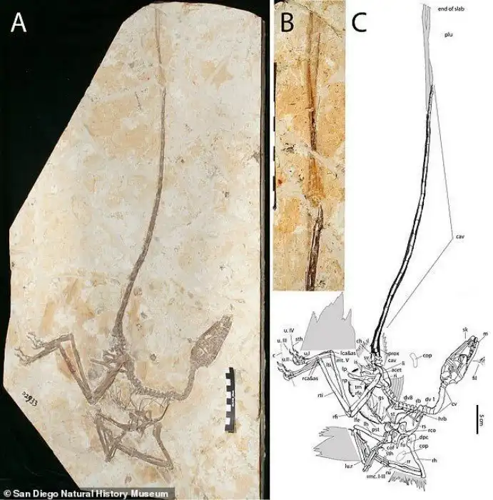 Больше всего ученых заинтересовали два длинных пера на хвосте особи: "У этого экземпляра есть перья на конечностях и хвосте, которые мы обычно наблюдаем только у взрослых птиц, а не у годовалой особи - рассказал соавтор исследования Эшли Пуст. - Или молодые динозавры нуждались в этих хвостовых перьях для выполнения какой-то функции, о которой мы пока не знаем, или их перья росли иначе, чем у большинства современных птиц".