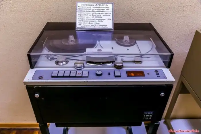 И в заключении образец вожделения технократов от радиотехники и механики. Профессиональный магнитофон "МЭЗ". Весит он 150 килограмм. Образец надежности и высокого качества звучания.