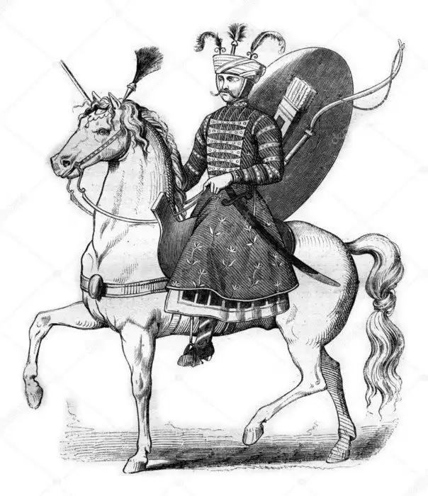 Эта мода распространилась очень быстро, проникла в Китай, Монголию и к нам, в Россию. Простые ратники ходили в лёгких поршнях или даже лаптях, а вот бояре и их личная дружина, конные витязи, носили те самые «восточные» сапоги с поднятым носом, на высоком каблуке. Такие «востроносые» сапоги просуществовали в русской коннице вплоть до реформ Петра I.