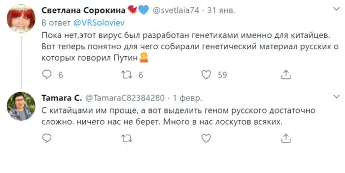 В конце января эксперты в соцсетях, проанализировав информацию по заболевшим коронавирусом, пришли к выводу, что вирус был создан искусственно, и действует он только на китайцев. То есть коронавирус - избирательное биологическое оружие.