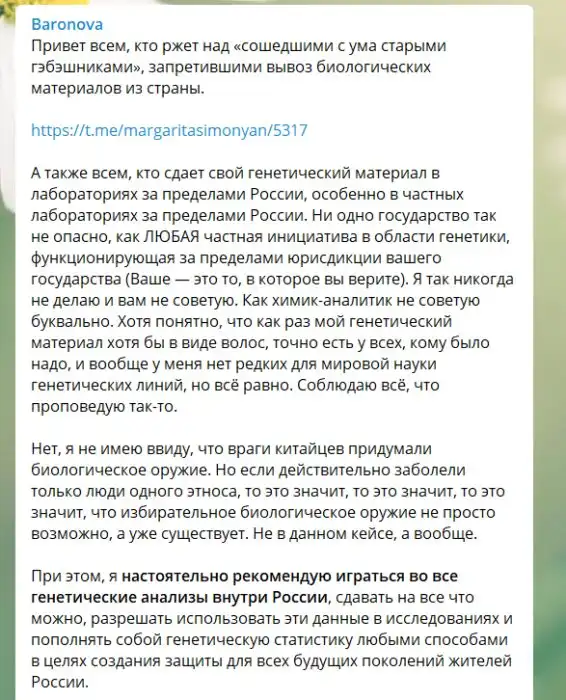 Сторонники теории заговора развили эту тему, припомнив слова Путина о сборе американцами наших биоматериалов.