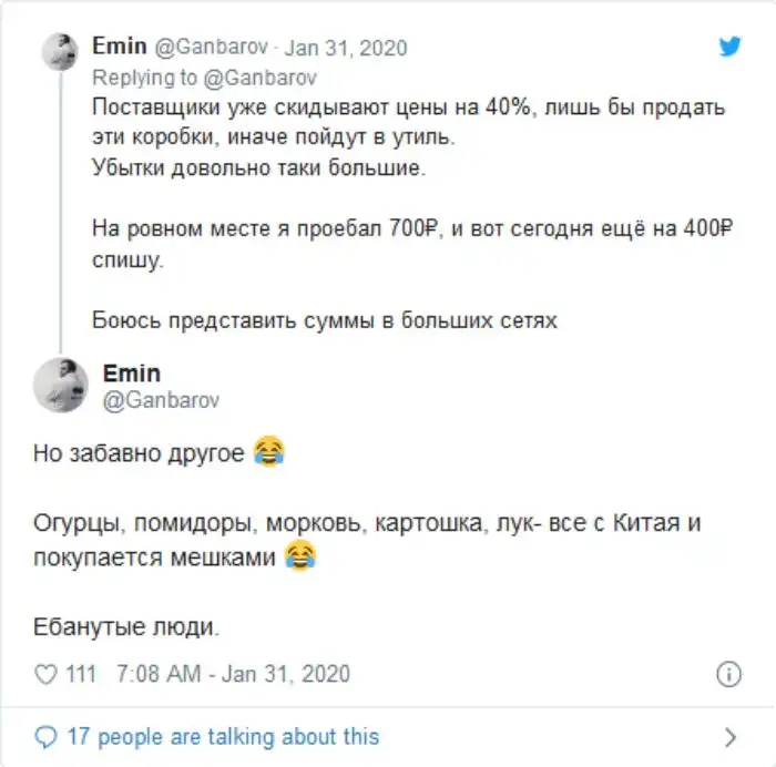 Напуганные новостями о коронавирусе люди скупают маски и противовирусные лекарства, а аптеки, конечно же, эти пользуются. Например, цена на медицинские маски в Забайкальском крае за день поднялась в 8 раз, а в Курской области в 35 раз. Татьяна Голикова сегодня сообщила на совещании президента с членами кабинета министров, что в некоторых регионах цена на маски взлетела с 1,5 руб. до 75-100 руб. Путин призвал отбирать лицензии у аптек, решившихся нажиться на беде.
