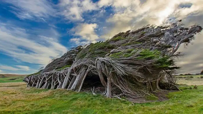 1. Слоуп-Пойнт - самая южная точка Новой Зеландии. Здесь круглый год дует сильный ветер из Антарктиды, причём всегда в одном направлении - с юга на север. В результате местные рощицы имеют такой причудливо-зловещий вид: